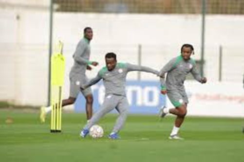 Super Eagles Train For Tunisia Inside House